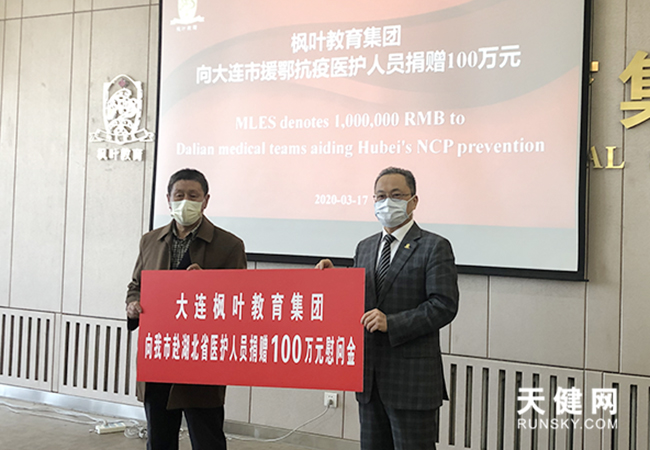 天健网消息(记者 丁一)3月17日,枫叶教育集团通过大连慈善基金会捐款100万元,定向援助546名大连驰援武汉一线医务工作者。这也是自疫情发生以来,大连慈善基金会接受大连教育行业捐赠的最大一笔抗疫爱心捐款。记者了解到,截至3月16日,大连市慈善总会(基金会)共接收善款9902.1万余元,接收物资价值1853.1万余元,款物累计11755.2万余元。