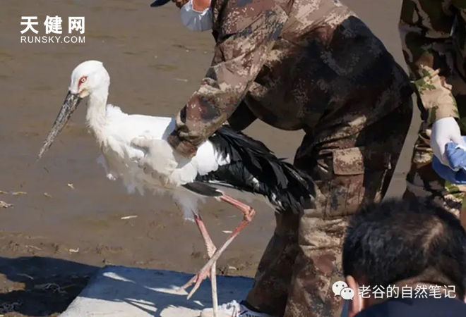 旅顺一只东方白鹳结束“疗养”重返自然