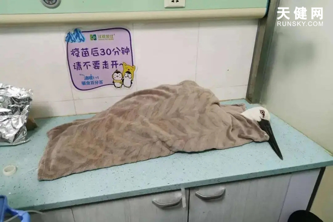 受伤的白鹳被发现救助