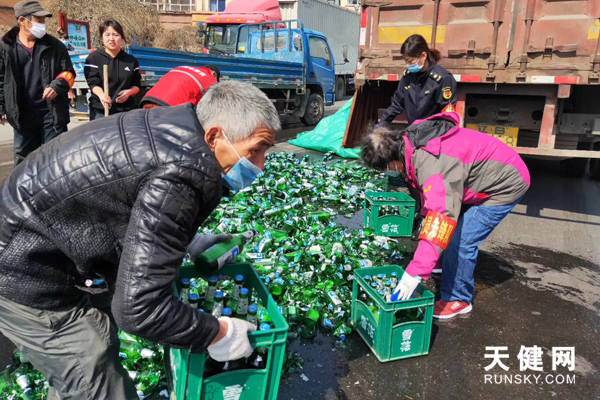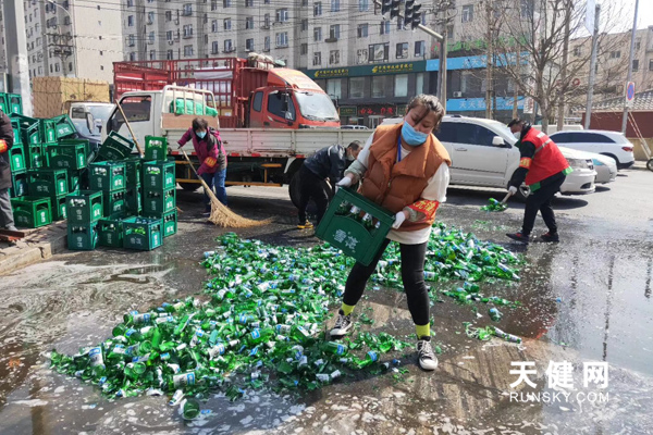 天健网消息(大连新闻传媒集团记者 王煜)“哗”一声,大货车上的啤酒箱相继滑落而下,噼里啪啦散落一地。3月18日上午,8路公交车始发站上演惊心动魄的一幕,大货车转弯时因磕碰路边石直接甩出300箱啤酒,瞬间玻璃碎片一地,啤酒流淌成河。就在货车司机还没不知所措时,近30名志愿者从四面八方赶来,纷纷出手相助。2个多小时,散落碎片被清走,摔落在地的酒箱子被整齐码好堆在路边,拥堵的交通也恢复顺畅。
