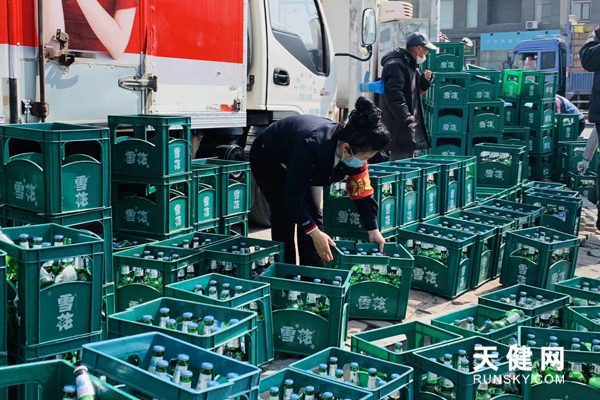 正好途径此处的南关岭街道姚兴社区书记徐艳看到这一幕,她在志愿者群里发了一条“8路始发站一货车啤酒洒落,大家过来帮个忙”的信息,不到3分钟,在两个卡点站岗测温的志愿者近30余名志愿者纷纷赶来,他们撸起袖子就干了起来。此时,带着红袖标的映山红志愿者成为一道靓丽风景线。