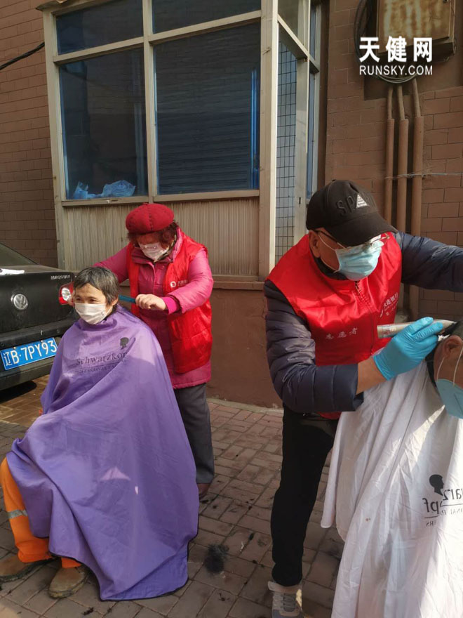 在防疫初期,由于受各种物质和条件限制,防控点就在露天,2月15日的一场突如其来的大雪,志愿者们冒着大雪和凛冽的寒风坚持防控值班,并且积极参加小区和人行道路的清雪工作。在参与维岗排查的队伍里面,有79岁的李秀华大姐,家住老虎滩每天次参加值班要乘6站公交车,风雨不误。刘福荣除了每天正常参加防控值班外,几乎是从早上一直到晚上全程在岗,每个岗的交接班要拍照,发放口罩,手套,可以说在2月份开始疫情防控时早上外面一片漆黑,晚上万家灯火刘福荣回才家,又要忙着为第二天值岗排班。今年的农历二月二剃龙头,正好是疫情最严重的节点,刘福荣带领义工志愿者露天为环卫工人义务理发了14人,同时志愿者服务队积极参与慈善总会和社区为支援武汉捐款活动,57名志愿者和义工共计捐款达6900余元。