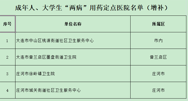 关于大连市城乡居民高血压糖尿病门诊用药保障定点医院的公告(增补)