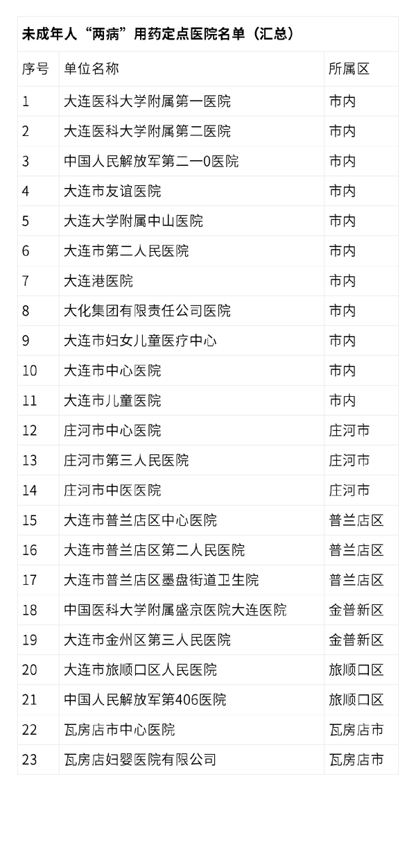 4.未成年人“两病”用药定点医院名单(汇总)