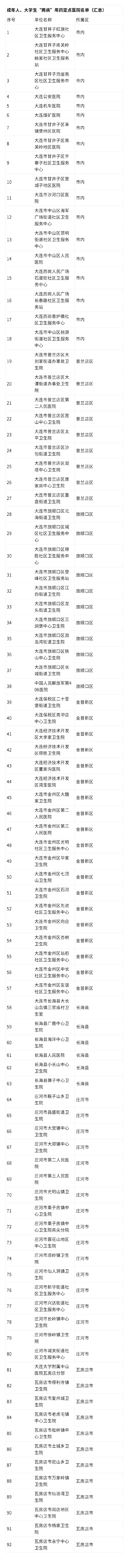 3.成年人、大学生“两病”用药定点医院名单(汇总)
