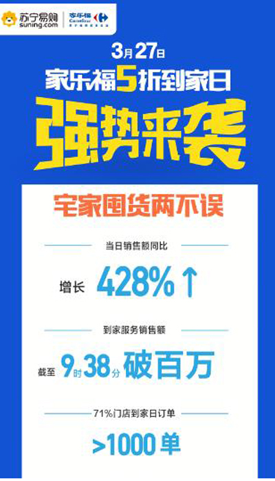 3.27苏宁家乐福5折到家日 单日销售同比增长428%