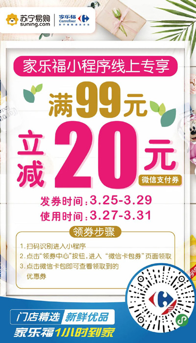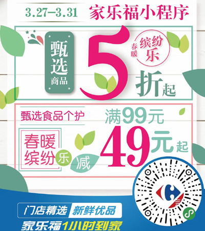 天健网消息(曲静媛 记者 葛春家)每天上班下班,没有时间逛街购物,『家乐福』小程序大促,打开手机逛超市,优惠一样很精彩!3/27-3/31,扫码逛家乐福,享满减,这里有,满减攻略全剧集。