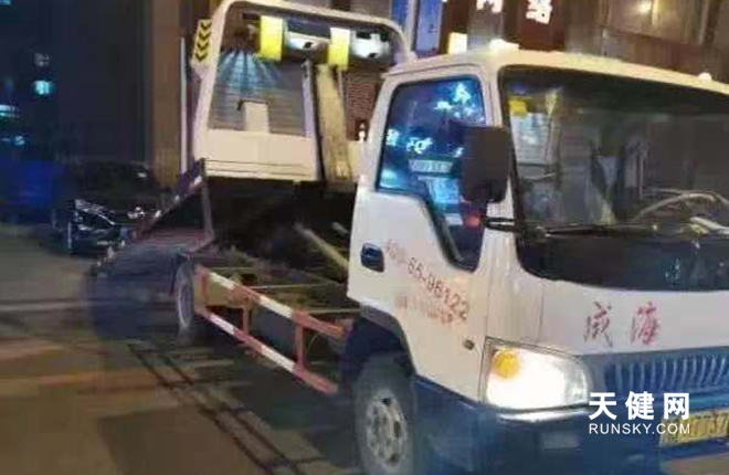堵塞消防通道的车辆被拖移(图片来源:中山消防、交警联合专项办)