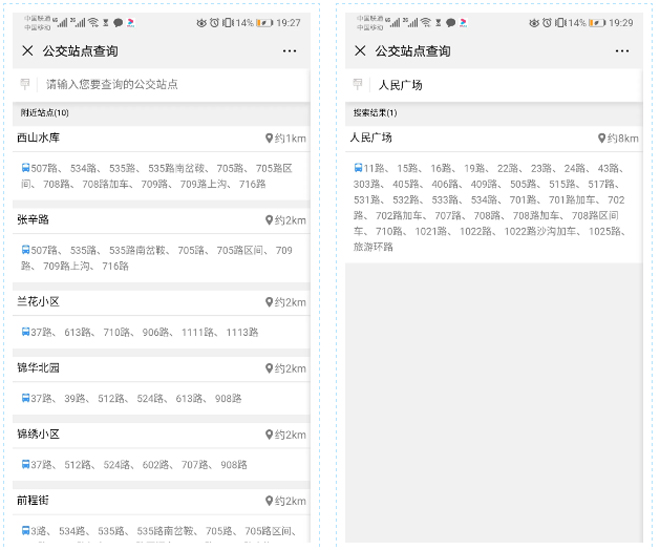 用户输入站点名称,即可查询途经站点的公交线路及线路详情。