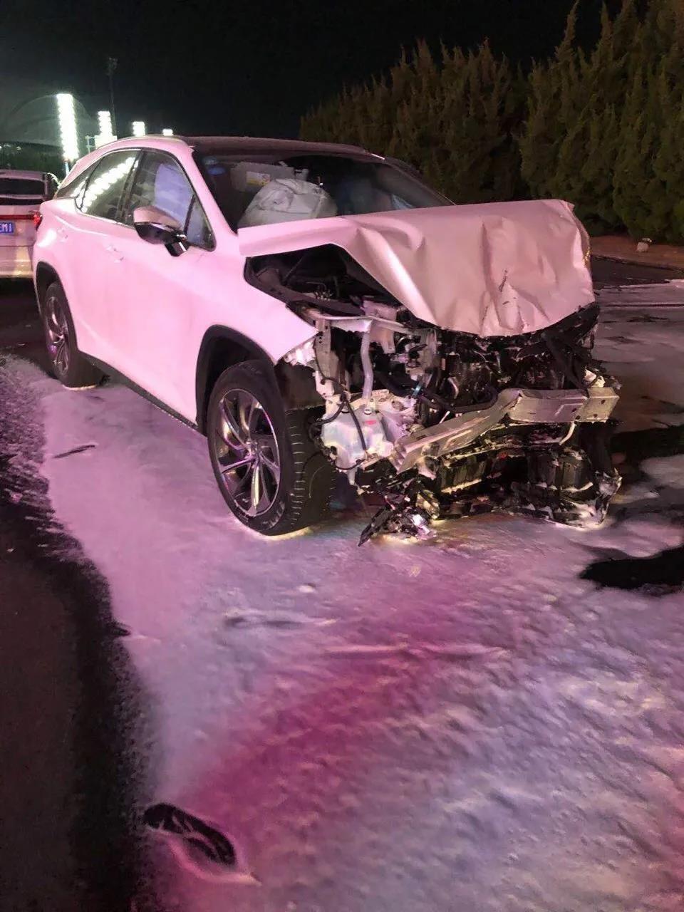 太突然了,都没看清楚怎么撞的,感觉雷克萨斯速度特别快,甩了下尾,直接就撞白色私家车上了,导致路边停靠的几辆车都被撞了。