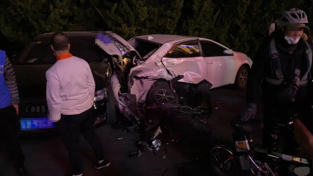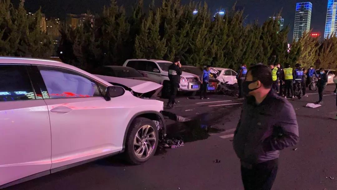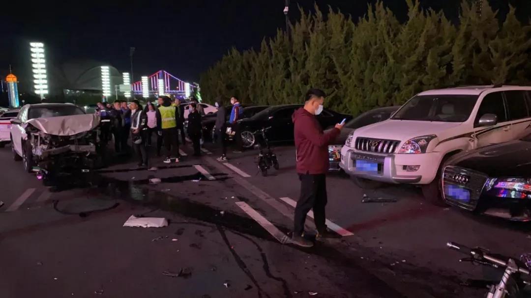 星海广场严重车祸多车受损 肇事车辆已面目全非