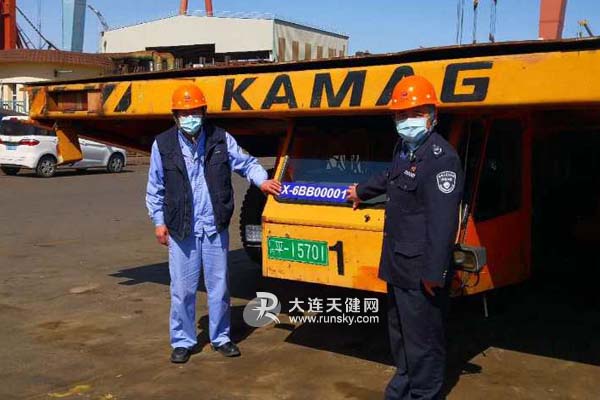 天健网消息(大连新闻传媒集团记者 葛春家)4月23日,市生态环境局工作人员来到大连船舶重工集团运输有限公司,为该企业发放非道路移动机械“环保标牌”。随着编号为“X-6BB00001”的大连市首块“环保标牌”在大连船舶重工集团运输有限公司一辆工程作业车上挂牌,大连市非道路移动机械“环保标牌”正式投入使用,这标志着大连市非道路移动机械排气污染防治工作取得了实质性进展。