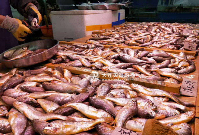 当地黄花鱼、渤海刀鱼、大个鸦片鱼、新鲜小嘴鱼、活蹦乱跳的虾爬子、嘎巴响的夹板虾……大连海鲜市场各类海鲜琳琅满目,市场内常能听到“还有几天就到休渔期了,再不买今年吃不到了”的吆喝声。