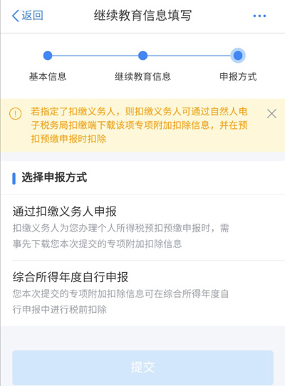 3.选择申报方式。可以选择【通过扣缴义务人申报】或者【综合所得年度自行申报】。