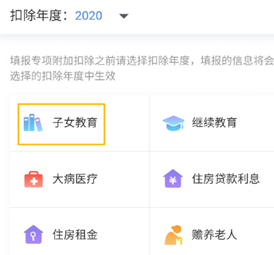 1.开个税APP,点击【首页】-【专项附加扣除填报】-选择【扣除年度】-点击【子女教育】。