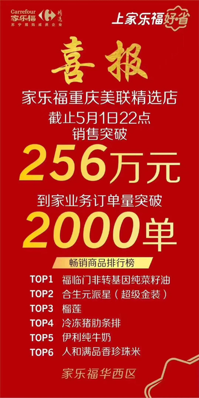 紧邻的宜家和苏宁在业态上也是相当互补,作为家居一站式消费体验店,去宜家买家居,在苏宁买家电成为五一这样的大节日营销要点。256万的销售额对于一个传统大卖场开业来说,也是个不小销售数据。从一定程度上说明此次家乐福精选店的“尝试”成功。