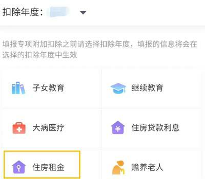 1.打开个税APP,点击【首页】-【我要办税】-【专项附加扣除填报】-选择【扣除年度】-点击【住房租金】。
