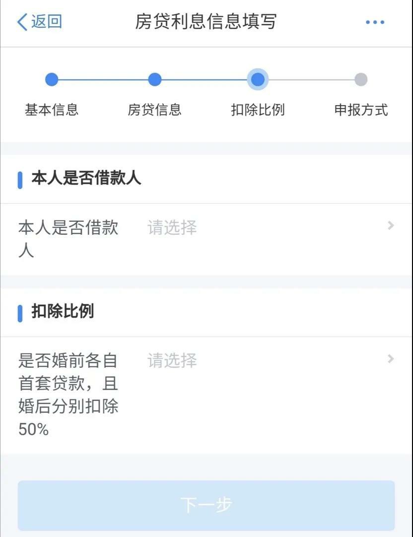 5.填写【扣除比例】。选择【本人是否借款人】以及【扣除比例】。