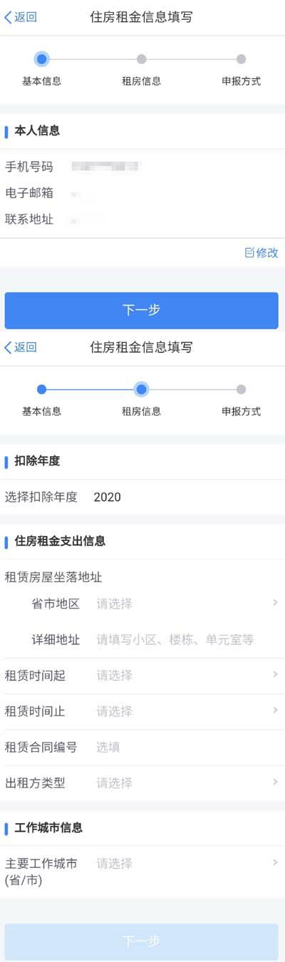 2.确认个人信息,填写租房信息。其中“租赁合同编号”为选填项。