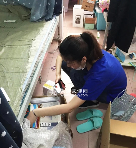 负责打包的老师、学生志愿者到宿舍后,就会与毕业同学进行视频通话,按照同学们的要求进行分类打包,避免弄错或者遗漏。打包装箱的行李,很快就能安全邮寄到家。