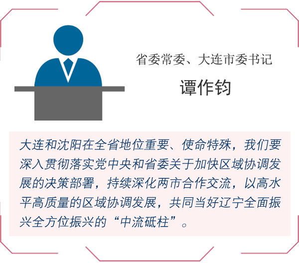 谭作钧在讲话中对沈阳市长期以来给予大连市的支持和帮助表示感谢,对沈阳市振兴发展取得的成绩表示钦佩。
