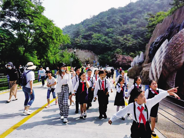 孩子们游览了海之韵十八盘海洋生物雕塑,通过讲解孩子们增强了对海洋及海洋生物的认知,提高了保护海洋、保护海洋生态环境的意识。参观者沿滨海路行至活动终点——怪坡平台,观看体验来自大连的海滨风景和海岛文化。同时,蓝天救援队进行了十五分钟的“夏季安全防溺水教育”。