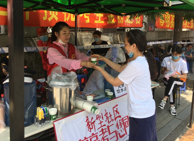 天健网消息(大连新闻传媒集团记者 毛雪梅)今天是高考的第一天,新型社区工作者和国学堂志愿服务队的志愿者们早早来到51中考点,在这里设立志愿服务站,为考生和家长提供饮用水、文具、应急药箱、雨衣、应急车辆等免费服务。高考期间,新型社区工作者、春柳街派出所民警、春柳综合行政执法队、春柳社区卫生服务中心医护人员、国学堂志愿服务队联合开展“护航高考 与您同行”活动。