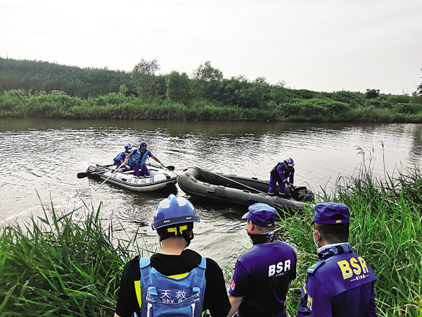 9日下午,普兰店蓝天救援队24名队员在队长吴青春的带领下,正在事发河道边展开拉网式搜索。救援队员们搜索的,是一名15岁的当地男孩小强。吴青春告诉记者,9日中午他们接到当地派出所的求助电话,请求在河道内展开搜索。据了解,小强已经从家中走失两天,一直未归。家长多方寻找,最终在这处小河边发现了小强的衣物,怀疑孩子已经落水遇难。普兰店蓝天救援队立即出动展开搜救。