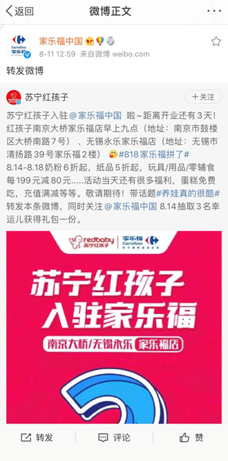 苏宁家乐福方面表示,提供更有竞争力的商品和服务是家乐福当下和未来的不懈追求,下一步,家乐福将细分开拓母婴品类,加码差异化服务,不断为家长和孩子提供专业化、精细化、最贴心的商品和服务,想顾客之所想,解顾客之所忧,满足顾客全方位、多样化的需求,不断寻求突破。
