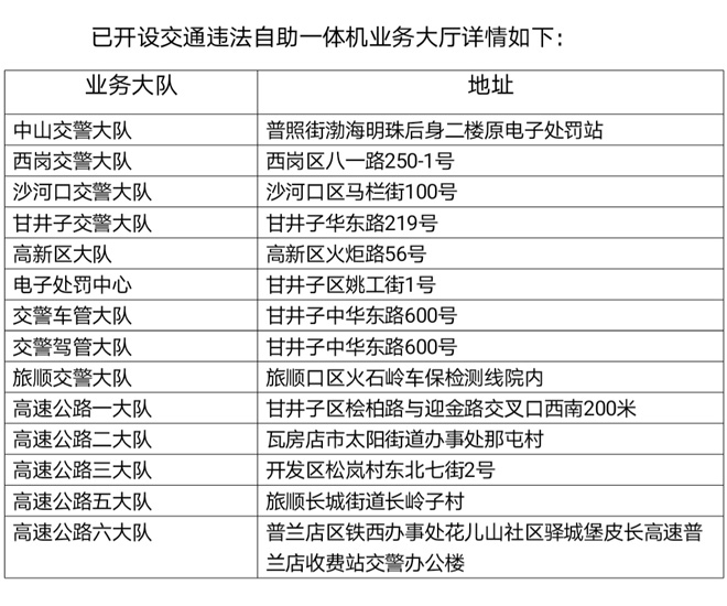 天健网消息(大连新闻传媒集团记者 冉嬛)为减少市民办理交通业务排队等候时间,大连市公安局交通警察支队将于8月19日推出便民服务新举措,在全市14个交警办事大厅开设交通违法自助缴费机,方便市民快捷办理交通违法处理、缴款等业务。