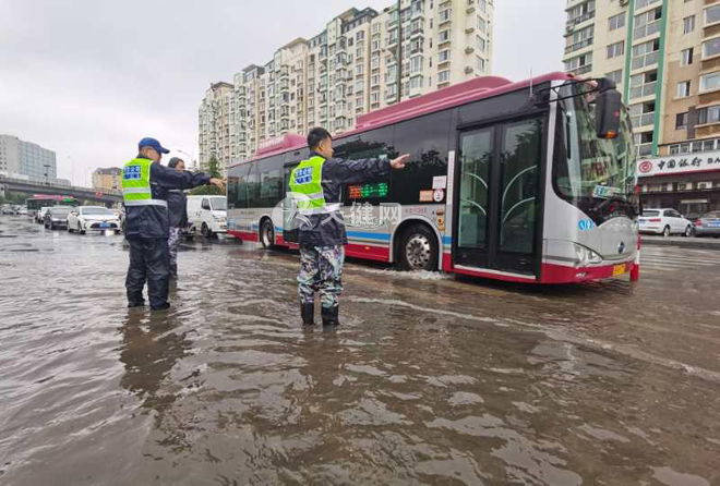 14点30分开始,随着雨量不断增大,市区部分低洼路段陆续出现积水区域,安排组织400余名管理人员深入线路运营一线,在市区公交线路途经的83处低洼易积水路段逐一安排人员把守,现场指挥、疏导,确保车辆安全、有序通行。