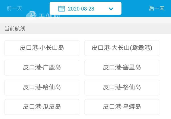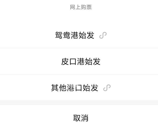 网上售票服务包括鸳鸯港始发、皮口港始发、其他港口始发三个选项。以皮口港始发为例,点击“网上购票”即可选择始发港口,然后选择行程时间以及航班,同时,还可以查询剩余票数,通过网上付款快速出票。