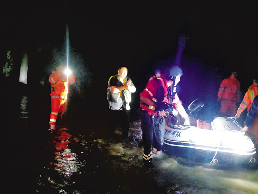 晚9点40分左右,大连万众应急救援队接到求助电话,普兰店分队立即出动赶往事发现场。“我们赶到高家中桥附近时发现,河水已经漫出河道,河面扩展到30多米宽,距离河边500米左右,积水已经没过了成年人的膝盖。河道中心位置水深超过3米,1米5长的两根打捞杆都探不到底!”万众应急救援队负责人告诉记者,由于积水太深救援车无法驶近河道,队员们扛起冲锋艇火速行进500多米,才放艇下水。