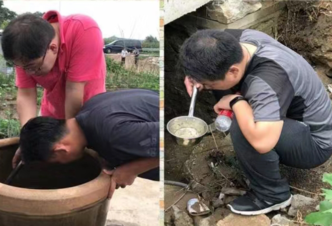 疾控中心工作人员在田间地头的各种水体里寻找蚊虫(市疾控中心供图)