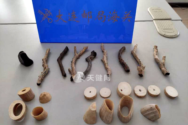 大连邮局海关查获的濒危野生动物制品(刘淼 摄)