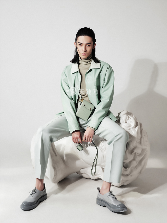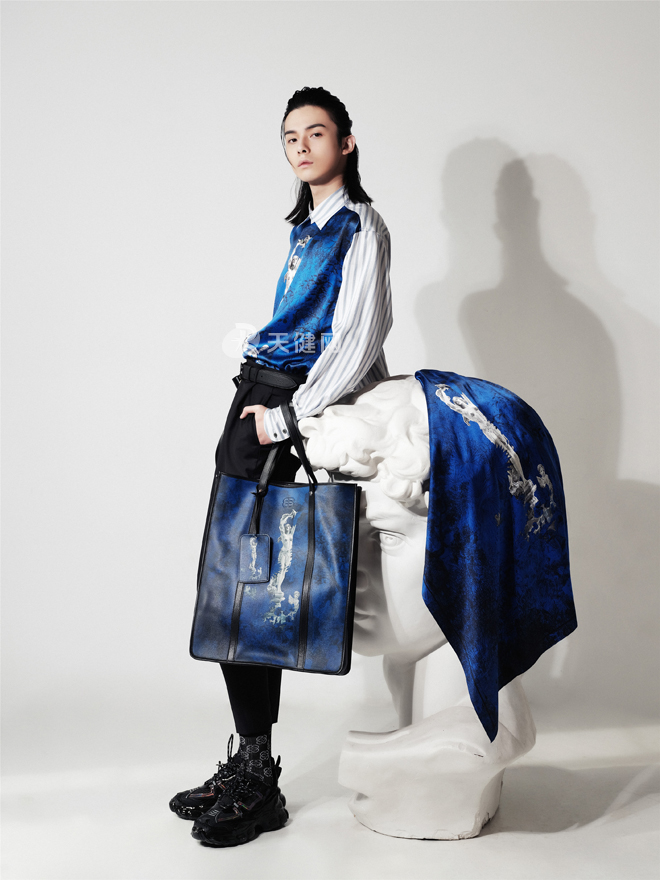比起时装秀的仪式感,张鹏更注重营造与众不同的轻奢时装氛围。他介绍说,“GUOJI国即”的LOGO是双G交织,可以理解成两只相偕而舞的飞蝶,也可以是环环相扣的如意,或者追逐嬉戏的游鱼。这一系列充分汲取了古希腊自由神秘的气息,将色彩与细节完美结合,柔和蜡色、地中海蓝色是本季核心色彩。亮相的产品中,涵盖了腰带、皮具、胸针、帽饰、袜子、耳机包等配饰。定制化面料作为重点,包括几十种领形、上千种面料。款式细节上体现出先锋精神和极简美学,倡导“包容”与“爱”。