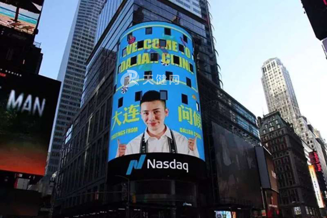 2018年,张鹏代表大连荣登纽约时代广场纳斯达克大屏。