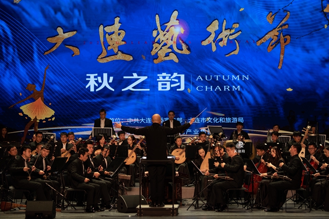 天健网消息(大连新闻传媒集团记者 金东淑)2020大连艺术节“秋之韵”演出季这个周末精彩继续,第二台剧目是中央民族乐团带来的气势恢弘大型民族音乐会《泱泱国风》。10月23日晚,大连人民文化俱乐部座无虚席。让观众惊喜的是,这样一台国家级的民族音乐会,却不乏流行元素,可谓经典与时尚并存。由周杰伦创作、演唱的流行歌曲《菊花台》,此次被改编成大提琴与二胡的浓情“对话”。