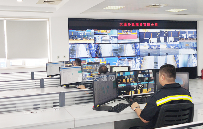 作为集装箱业务的后方“理货中枢”,大连港智能理货大厅近期在大窑湾港区正式投入使用,成为口岸智能理货的又一阶段性成果。大厅现阶段配有调度室、微机室、智能理货工作台、智能理货大屏及配套功放设备,可满足24名理货员同时开展集装箱理货作业;公共大屏幕能实时监控现场作业情况,并可对现场作业进度、在港船舶、理货工作明细进行详细察看,同时也可实时显示当前作业区域的天气实况与预报。一线理货员日常工作全部由码头现场转入智能理货大厅,作业环境得到极大改善,“人机混合”作业的安全风险也基本消除。