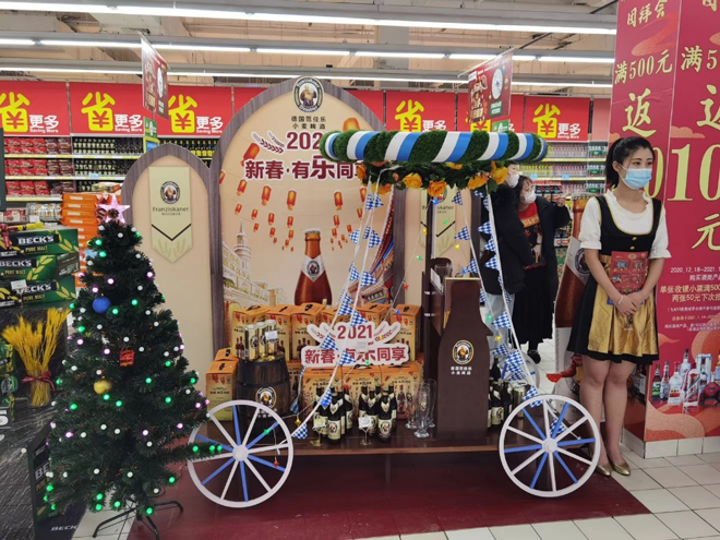 天健网消息(曲静媛 大连新闻传媒集团记者 葛春家)12月25日,苏宁家乐福新春酒团拜会在沈阳家乐福金牛门店开启,这次参展的品牌有:洋河、郎酒、三沟、老龙口、百威、科罗娜、雪花、青岛等,各大品牌酒商带来了丰富的酒品,为冬日家乐福门店带来一片微醺香醇的氛围。