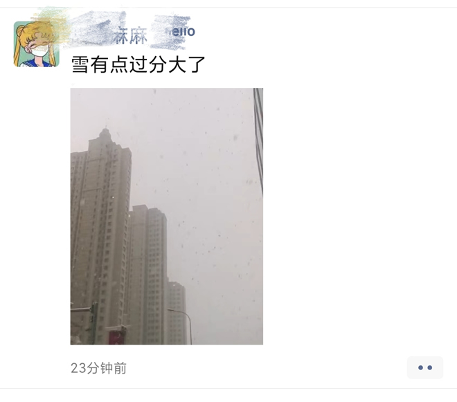 今天上午到中午我市仍有小雪,道路湿滑、结冰,建议各单位注意做好除雪防滑工作。今天夜间开始气温下降,建议疫情防控相关工作人员和公众注意防寒保暖。
