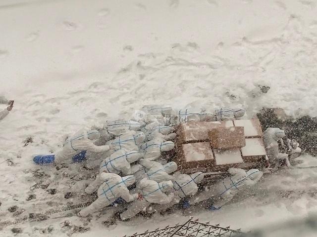 这群平均年龄只有19岁的热血青年,他们在工作中有心酸、有苦衷、有委屈,但却无所计、无所图、无所怨。一箱一箱物资、一袋一袋餐食、一趟又一趟,顶风冒雪......即使困难重重,他们都没有畏惧。护目镜上的汗水与冷气交杂看不清路,防护服里的毛衣湿透了变得更加冰冷,脚底上磨起了血泡走路很疼......他们都坚持了下来。