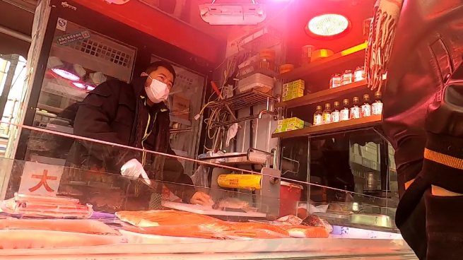 在沙河口区马栏市场,多数销售三文鱼的商家都在醒目位置标明:本地三文鱼,绝非进口。只有一家摊位在销售“挪威三文鱼”。摊位经营者说,其销售的三文鱼是进口的,从新长兴市场进货。“根据市场管理要求,批发单位必须提供核酸检测报告和进出口检验检疫证明。在市场内我们还需进行再次备案登记。”按照市场管理单位要求,马栏市场内的水产生鲜销售商户还需要每日对摊位柜台进行两次消毒。