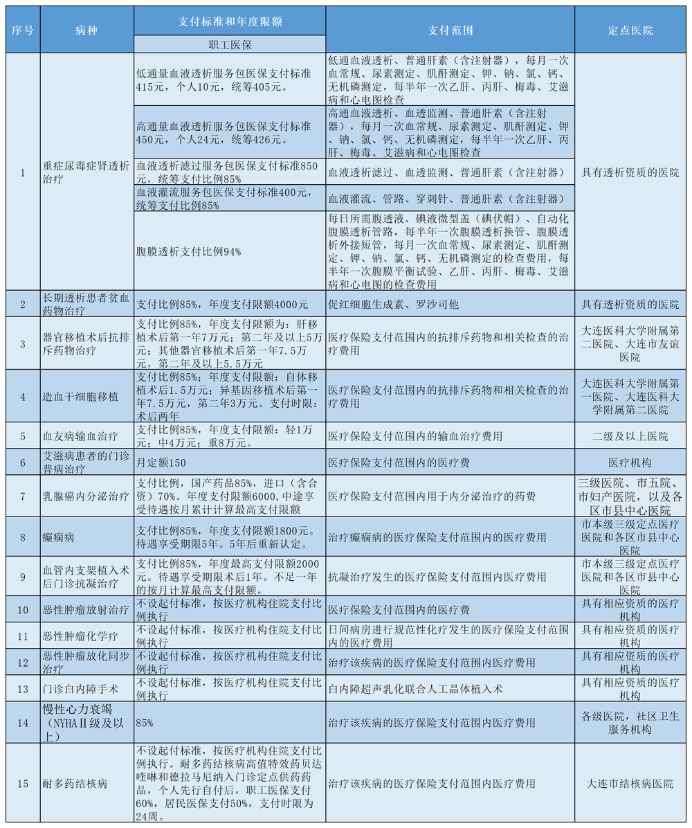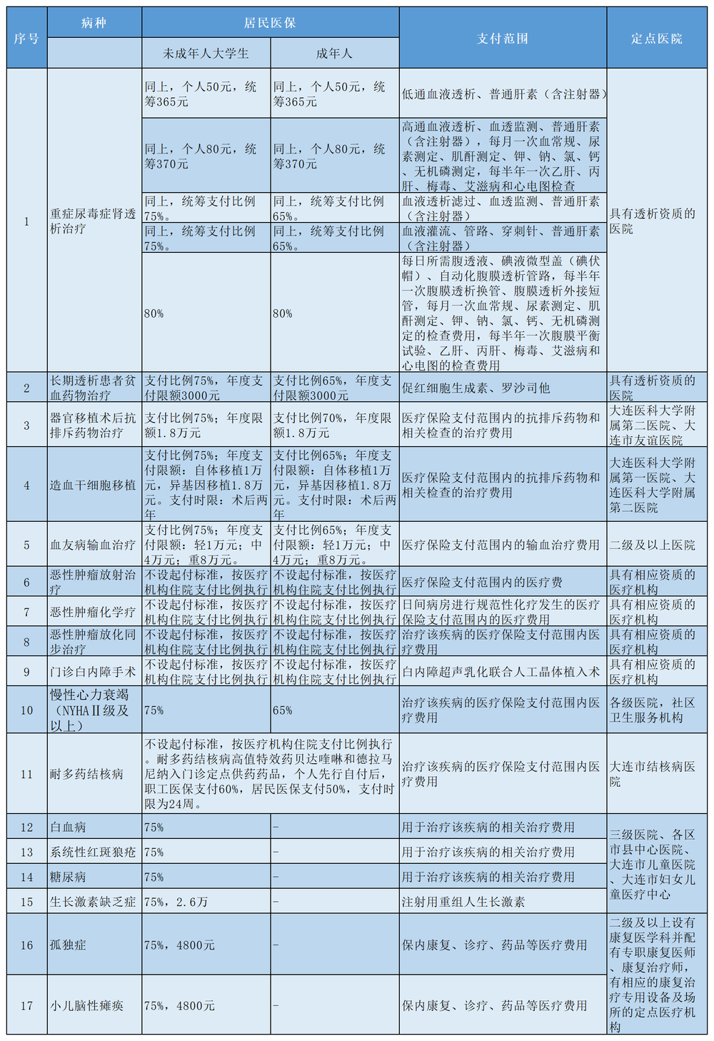 在本次提高待遇中,将恶性肿瘤门诊放化同步治疗纳入大连市职工医疗保险和城乡居民医疗保险Ⅱ类病种管理;门诊规定Ⅱ类病种医药费用享受基本医保和补充医保双重保障待遇。