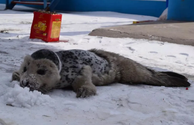 上午9时30分许,金普新区渔政部门接到群众反映,在金普新区大魏家街道荞麦山村附近海边发现一只斑海豹幼崽,“孤身一人”,看上去有些虚弱。