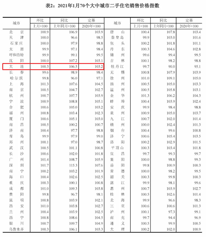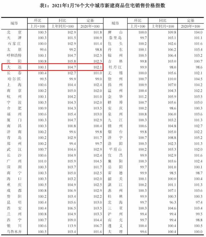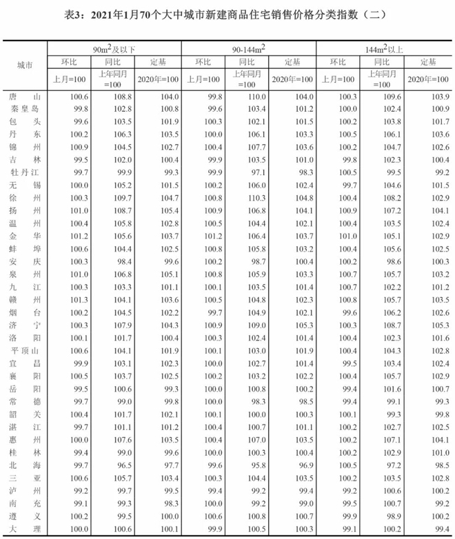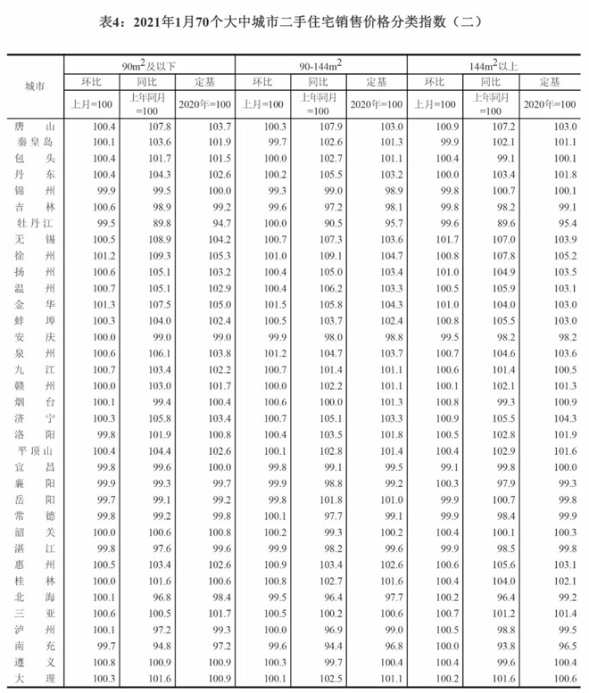 5.按照统计制度规定,70个大中城市房地产价格统计调查每五年进行一次基期轮换,2021年1月开始使用2020年作为新一轮对比基期。新基期对各分类权数进行了适当调整,以更好地反映住宅销售结构的变化情况。经测算,本次基期轮换对各城市商品住宅销售价格各月同比指数影响平均都在0.05个百分点以内。
