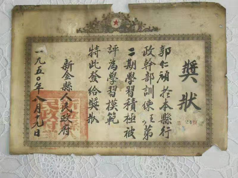 我入党后做过党办主任,又担任过企业里党组织的书记。真就是如白驹过隙,一晃几十年过去了,每每回想起来这辈子走过的路,都忘不了老父亲给我的激励。如今我已经退休了,今天我要依然要把那个七十多年前的奖状和父亲的教诲都继续精心珍藏。