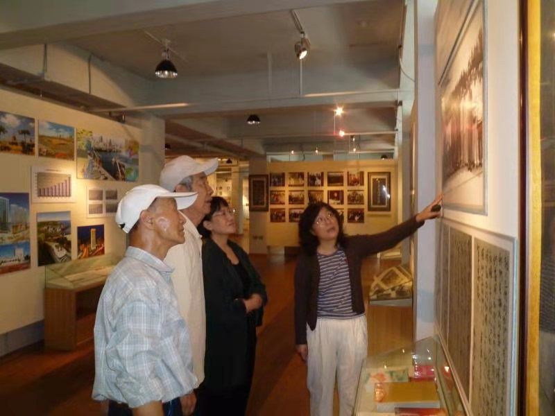 刘志惠在博物馆为观众讲解城市历史。