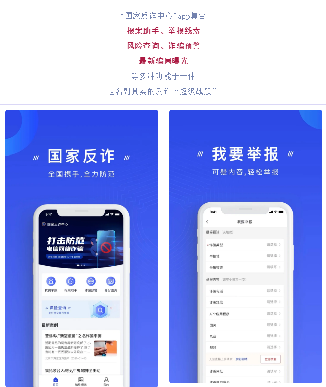 国家反诈中心APP由公安部刑事侦查局组织开发,是一款能有效预防诈骗、快速举报诈骗内容的软件,软件里面有丰富的防诈骗知识,通过学习里面的知识可以有效避免各种网络诈骗的发生,提高每个用户的防骗能力,还可以随时向平台举报各种诈骗信息,减少不必要的财产损失。