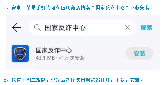 您可以在“国家反诈中心”app里快速检测全机已安装应用和未安装应用安装包,精准识别手机内可疑诈骗应用。